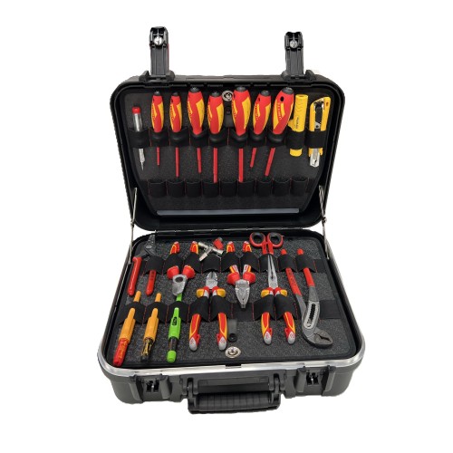 Esta maleta técnica es un completo set de herramientas profesionales diseñado especialmente para electricistas, técnicos de mantenimiento y trabajos donde la seguridad y la eficiencia son esenciales. Este completo set incluye herramientas aisladas hasta 1000V, perfectamente organizadas en una maleta rígida tipo trolley, con 2 paneles portaherramientas con elásticos que mantiene el equipo siempre ordenado. Un kit robusto, seguro y pensado para una movilidad total.